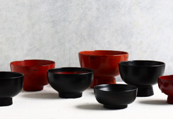 風合いも様々な椀に、繊細な螺鈿の茶箱…。
